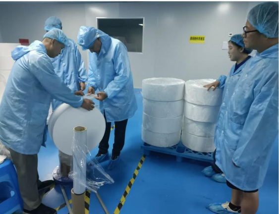 Ta pregled tovarne je bil namenjen stranki zagotoviti celovito razumevanje naših proizvodnih zmogljivosti in sistema vodenja kakovosti. Kupec si je v spremstvu naših sodelavcev ogledal delavnico za proizvodnjo gaznih rol v prvem nadstropju in delavnico za zlaganje in pakiranje gaznih listov v drugem nadstropju, pri čemer se je osredotočil na opazovanje postopka rezanja svojih naročenih tortnih rol. Stranka je izrazila veliko pohvalo za naše stabilno in standardizirano proizvodno okolje, še posebej pa jo je zanimal vlažilni sistem, nameščen za vzdrževanje stabilnega okolja.